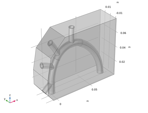 واحد طول در هندسه وارد شده سانتی متر است، در حالی که واحد طول پیش فرض در COMSOL Multiphysics متر است. بنابراین، شما باید هندسه را دوباره مقیاس کنید.