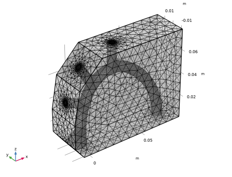 1 | در پنجره Model Builder ، در قسمت Component 1 (comp1) روی Mesh 1 کلیک کنید . |
