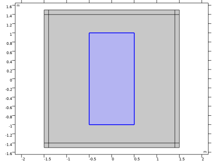 هندسه مدل دو بعدی را همانطور که در شکل 2 نشان داده شده است در نظر بگیرید . یک دامنه هوای مربعی، که توسط یک لایه کاملاً منطبق (PML) از همه طرف محدود شده است، یک ناحیه مستطیلی را در بر می گیرد که در آن عدسی فراماده تعریف شده است.