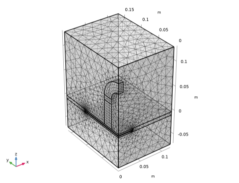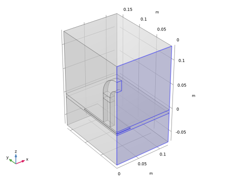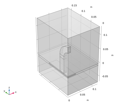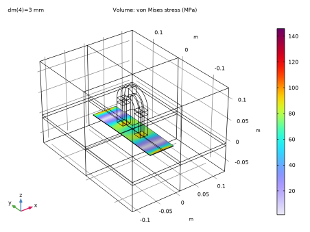 این مدل با استفاده از رابط مغناطیسی مکانیک، بدون جریان چندفیزیکی تنظیم شده است. هنگامی که این رابط به یک مدل اضافه می شود، یک رابط مکانیک جامد و یک میدان مغناطیسی، رابط فیزیک بدون جریان به طور خودکار به همراه ویژگی جفت چندفیزیکی نیروهای مغناطیسی اضافه می شود. دو گره مرتبط با مش متحرک نیز به طور خودکار اضافه می شوند: یک دامنه تغییر شکل و یک شرط مرزی Symmetry/Roller.