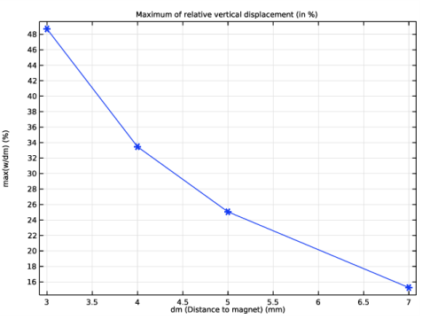 یک آهنربای دائمی قوی در نزدیکی یک صفحه نازک محکم شده از آهن قرار می گیرد. نیروی مغناطیسی باعث انحراف صفحه می شود. این مثال تغییر شکل الاستیک و تنش صفحه را مطالعه می کند. تغییر شکل صفحه بر توزیع میدان مغناطیسی تأثیر دارد. این اثر به دلیل استفاده از توری متحرک در هوای اطراف صفحه است. این مدل با استفاده از رابط مغناطیسی مکانیک، بدون جریان چندفیزیکی تنظیم شده است.