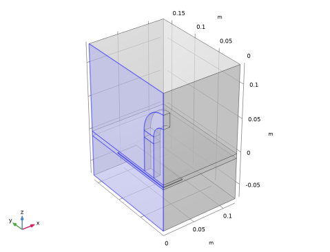 به دلیل تقارن، می توانید تنها یک چهارم آهنربا و صفحه را مدل کنید. علاوه بر این، میدان مغناطیسی باید در هوای اطراف با استفاده از یک جعبه مرزی نشان داده شده در شکل 2 محاسبه شود.
