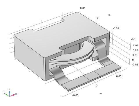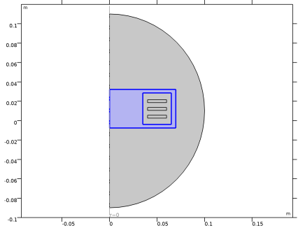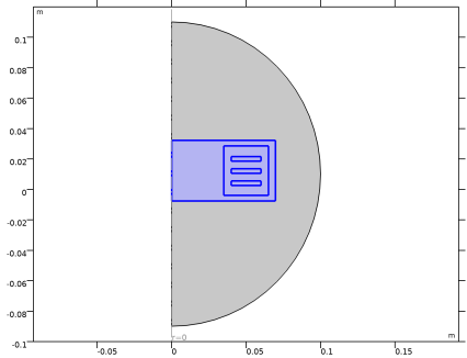 با شروع از مدل سلف سه بعدی که در کتابچه راهنمای مقدمه ماژول AC/DC توضیح داده شده است ، یک مدل متقارن محوری دو بعدی که قادر به توصیف یک سلف خود تشدید کننده است ایجاد می شود. به منظور ساخت یک مدل متقارن محوری دو بعدی معادل، یک هسته متقارن محوری موثر ترسیم شده و از ویژگی RLC Coil Group استفاده می شود.