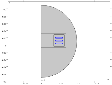 نمایش هندسه سیم پیچ در تقارن محوری دوبعدی مستقیماً از سطح مقطع میانی در صفحه xz به صورت سه بعدی گرفته شده است. شکل 4 هندسه متقارن محوری 2 بعدی را نشان می دهد.
