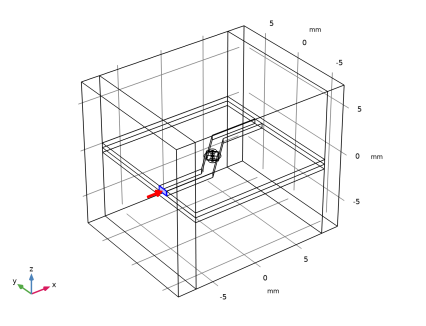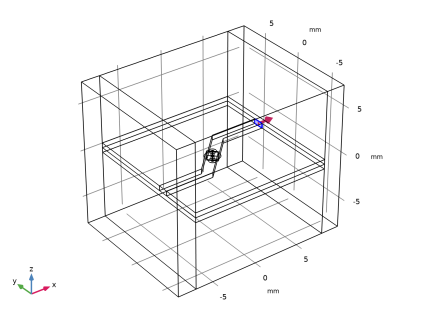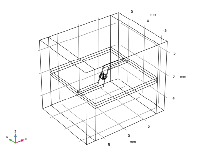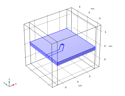 سطوح مستطیلی کوچک، پل زدن خطوط میکرو نوار و صفحه زمین، برای مدل سازی پورت های توده ای استفاده می شود که در آن خطوط میکرواستریپ با 50 Ω برانگیخته یا خاتمه می یابند . حوزه هوا در خارج از برد مدار با استفاده از خواص مواد خلاء تعریف می شود. دامنه شبیهسازی توسط یک شرط مرزی پراکنده کوتاه میشود که یک مرز جذبی است که فضای باز را توصیف میکند.