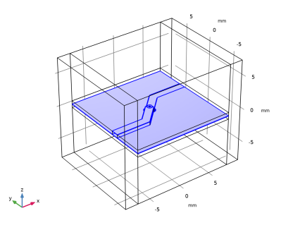 یک صفحه زمین با یک پد ضد عبور 0.8 میلی متری توسط دو زیرلایه 20 میل (0.508 میلی متر) با ثابت دی الکتریک ε r = 3.38 مشترک است. خطوط ریز نوار 50 Ω روی سطوح بالا و پایین لایه های دی الکتریک انباشته شده طرح ریزی شده است. شرایط مرزی رسانای الکتریکی کامل (PEC) برای تمام قطعات فلزی از جمله خطوط طرحدار، از طریق پد، از طریق سوراخ و صفحه پایین زمین اعمال میشود. خطوط microstrip 135 درجه خم شده و از طریق یک فلزی به هم متصل می شوند.