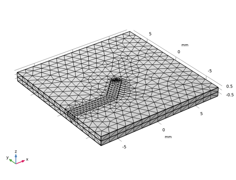 اندازه مش باید به اندازه کافی کوچک باشد تا طول موج های مربوط به بالاترین فرکانس سیگنال را نیز مشخص کند. برای این مدل، حداکثر فرکانس تقریبی 96 گیگاهرتز است. این مربوط به دوره ای است که نیمی از زمان افزایش تابع پله است. از آنجایی که موج بیشتر بین خط میکرو نوار و صفحه زمین هدایت می شود، تنها حداکثر اندازه مش لایه های دی الکتریک به صورت زیر تنظیم می شود:
