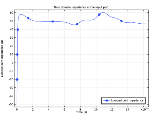 شکل 3: امپدانس دامنه زمانی در پورت 1. پس از تنظیم، امپدانس اندازه گیری شده به 50 Ω نزدیک تر است .