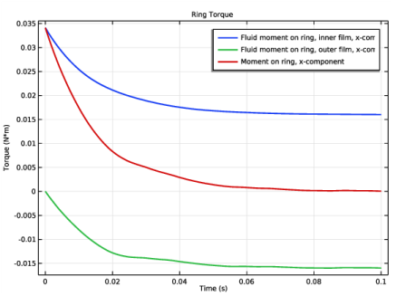 سرعت حلقه در ابتدا به دلیل نیروهای ویسکوز وارد بر لایه داخلی و خارجی افزایش می یابد و زمانی که گشتاور روی حلقه از هر دو فیلم متعادل شود به حالت ثابت می رسد. دستورالعمل های زیر را برای ایجاد نمودار سرعت حلقه نشان داده شده در شکل 3 دنبال کنید .