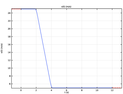 در اینجا m جرم ماشین ( 1800 کیلوگرم) و v نشان دهنده سرعت آن است. شکل 2 نمایه v و شکل 3 نمایه شتاب مربوطه را نشان می دهد.