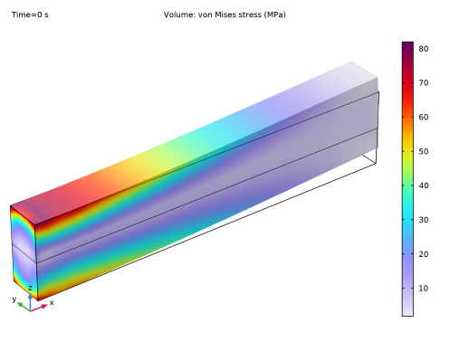 تانسور الاستیسیته است. این اصطلاح از تجزیه و تحلیل ساختاری انجام شده در حوزه فرکانس محاسبه می شود.حالت اولیه در زمان t  = 0 بدون تنش است و دمای اولیه 293.15 K در کل تیر است.