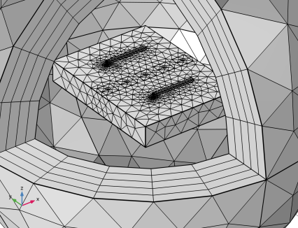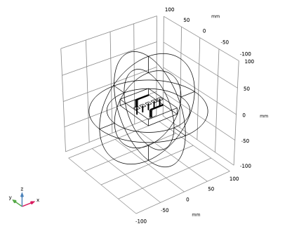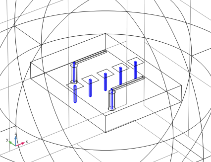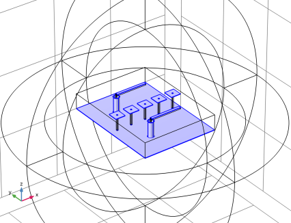 ساختار آرایه آنتن در داخل یک کره هوا که توسط یک لایه کاملاً منطبق کوتاه شده است، مدلسازی شده است که به آنتن اجازه میدهد آزادانه در همه جهات تابش کند. با این حال، ویژگی های آنتن در اینجا مورد توجه اصلی نیستند.