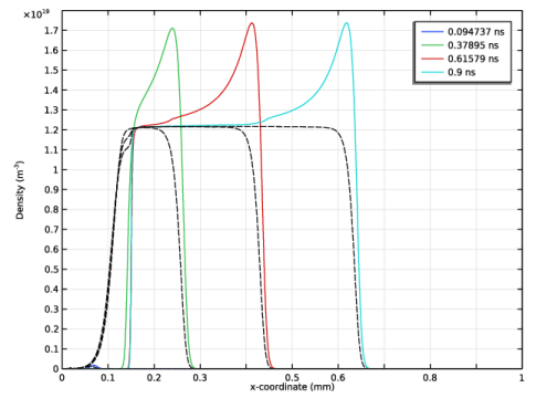 یک توافق عالی کلی با نتایج مدل ارائه شده در اینجا و نتایج مدل سیال ارائه شده در Ref وجود دارد. 1 هنگام مقایسه مقادیر پیک چگالی الکترون، سطح یونیزاسیون در بدن، انرژی میانگین الکترون، سرعت انتشار جریان، و پروفایل های فضایی با مقادیر مختلف.