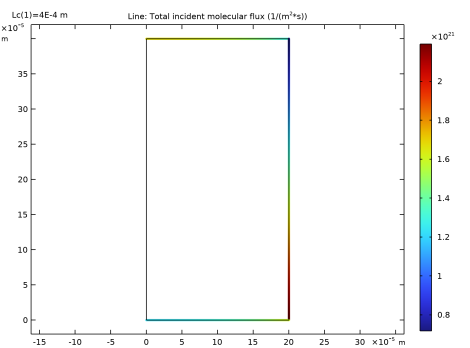 راه اندازی این مدل با استفاده از رابط جریان مولکولی ساده است. دیواره های مویرگی شرایط مرزی دیوار، شرایط مرزی مخزن برای دهانه پایین و دهانه بالایی شرایط مرزی خلاء کل اختصاص داده می شود. هندسه پارامتری شده است و یک حل کننده پارامتری برای تغییر ابعاد مویرگی استفاده می شود.