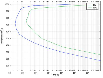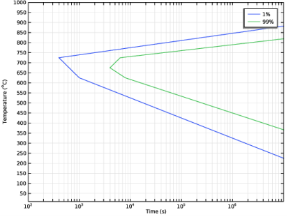 شکل 1: داده های TTT برای تبدیل فاز آلفای بتا به Widmanstätten.
