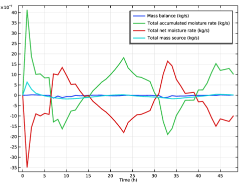 1 | در پنجره Model Builder ، گره Relative Humidity Over Two Days را گسترش دهید ، سپس روی Probe Table Graph 1 کلیک کنید . |