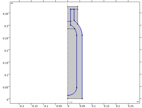• | در مرز سمت چپ بالا، دامنه جریان با محور تقارن منطبق است که در آن شرط تقارن محوری به طور خودکار اعمال می شود. |