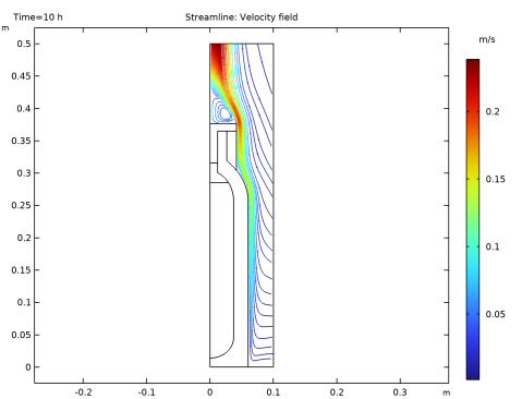 ضریب انتقال حرارت برای مدلسازی تبادل بین مایع و دیوارهها و حوزه هوای بالای مایع استفاده میشود. به دلیل خواص عایق بودن سایر قسمت های فلاسک خلاء، این رابط انتقال حرارت کلی را محدود نمی کند. از این رو، مقدار ضریب انتقال حرارت مورد استفاده در این رابط واقعاً مهم نیست، به شرط اینکه به اندازه کافی بزرگ باشد.
