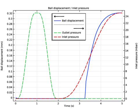 با اعمال پیش تغییر شکل فنر، توپ کمی به سمت پایین حرکت می کند. با افزایش فشار معکوس، جابجایی توپ ناچیز است. پس از 2 ثانیه، جریان در جهت عملکرد افزایش می یابد تا زمانی که توپ به حداکثر جابجایی حدود 0.32 میلی متر برسد.