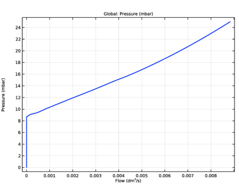 برای مطالعه عملکرد شیر ابتدا یک جریان معکوس و سپس یک جریان عملیاتی اعمال می شود. مرزهای بالادست (پایین) و پایین دست (بالا) به ترتیب به عنوان شرایط ورودی و خروجی با فشار متغیر تعریف می شوند. حداکثر فشار 25 mbar است.