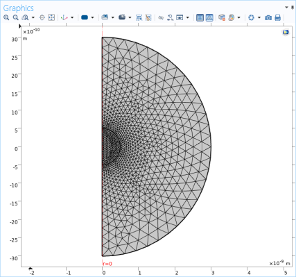| 2 | یک دایره (   ) اضافه کنید. در پنجره تنظیمات زیر اندازه و شکل ، در قسمت Radius 3e-9 (3 نانومتر) را وارد کنید. در قسمت Sector angle عدد 180 را وارد کنید . |