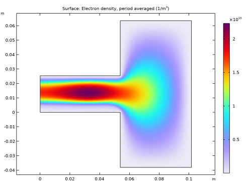 در این مثال، راکتور GEC CCP با استفاده از ماژول پلاسما Multiphysics COMSOL شبیه سازی شده است. شبیهسازیها برای پلاسمای آرگون است که در فشار 100 mTorr توسط تحریک الکتریکی دورهای 13.56 مگاهرتز ثابت میشود. این مدل 2 بعدی است و تکامل فضا و زمان – دوره ای چندین ویژگی ماکروسکوپی تخلیه را توصیف می کند. راکتور الکتریکی نامتقارن با الکترود برقی تقریباً 10 سانتی متر قطر و فاصله بین الکترودها 2.45 سانتی متر است.