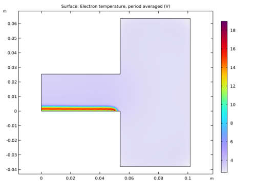 دوره متوسط دمای الکترون در ماژول پلاسمای چندفیزیکی COMSOL از آن محاسبه می شود (4) که در آن براکت ها نشان دهنده میانگین دوره است. برای به دست آوردن دماهای الکترون مشابه دماهای موجود در Ref. 1 میانگین باید به صورت محاسبه شود (5) |