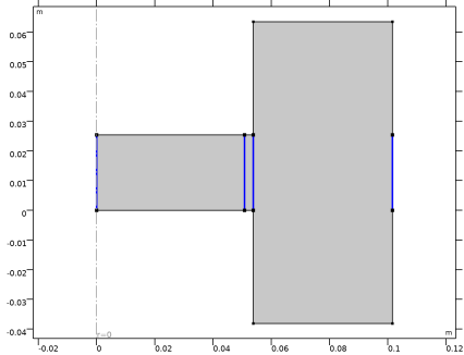 هندسه شامل یک نقطه برای شکست دی الکتریک، و سه نقطه اضافی برای کمک به ایجاد یک مش نقشهبرداری شده است. از آنجایی که رابط Plasma، Time Periodic تعداد زیادی درجه آزادی ایجاد می کند، ایجاد هندسه ای که می تواند به طور موثر مشبک شود به کاهش زمان محاسبات و حافظه مورد نیاز هنگام حل کمک می کند.