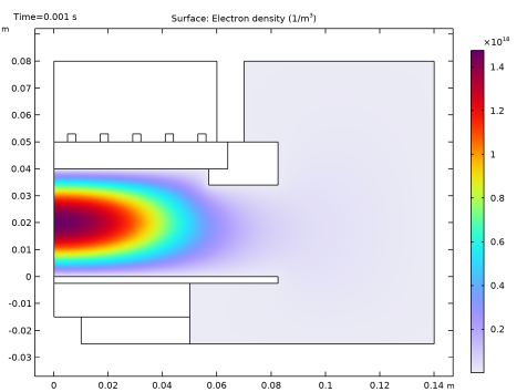 چگالی الکترون و انرژی متوسط الکترون با حل یک جفت معادله رانش- انتشار برای چگالی الکترون و انرژی الکترون میانگین محاسبه میشود. برای اطلاعات دقیق در مورد انتقال الکترون، به نظریه برای رابط انتشار رانش در راهنمای کاربر ماژول پلاسما مراجعه کنید .