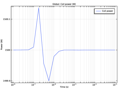 در این مثال یک توان ثابت 1500 وات به سیم پیچ اعمال می شود. مقداری از این نیرو در سیم پیچ تلف می شود و مقداری در پلاسما رسوب می کند.