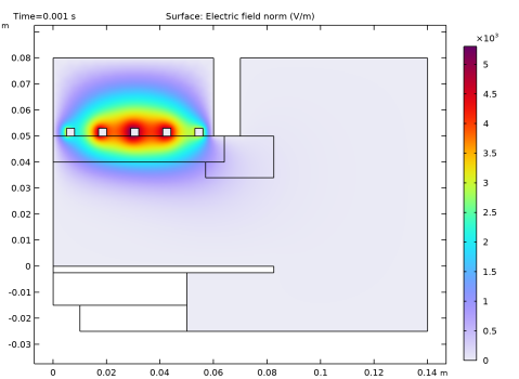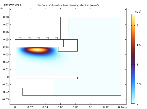 که در آن n e چگالی الکترون، q بار الکترون، m e جرم الکترون، ν e فرکانس برخورد، و ω فرکانس زاویه ای است. اصطلاح گرمایش ژول که وظیفه گرم کردن الکترون ها را بر عهده دارد در ویژگی چندفیزیک منبع حرارت الکترون تنظیم شده است.