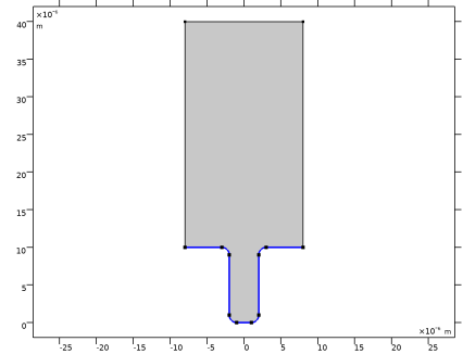 این مثال مدل بر اساس رسوب مس در یک مدل ترانچ است که در کتابخانه کاربردی ماژول رسوب الکتریکی موجود است، که نشان میدهد یک رسوب غیریکنواخت در امتداد سطح ترانشه وجود دارد که منجر به تشکیل یک حفره یا حفره میشود ( مرجع 1 ). از آنجا که رسوب مس در یک مدل ترانچ از گره هندسه تغییر شکل یافته استفاده می کند، که نمی تواند تغییرات توپولوژیکی را مدیریت کند، محاسبات را نمی توان پس از تشکیل حفره در حدود 14 ثانیه ادامه داد.