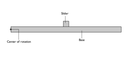 هندسه لغزنده مورد استفاده در این مدل در شکل 1 نشان داده شده است . هندسه از دو قسمت اسلایدر و پایه تشکیل شده است. پایه با سرعت زاویه ای ثابت به دور مرکز چرخش خود می چرخد. لغزنده به پایه متصل است به طوری که ترجمه آن در امتداد محور پایه آزاد است. برای اتصال لغزنده به پایه از اتصال منشوری استفاده می شود. یک فنر الاستیک و یک دمپر چسبناک نیز روی مفصل منشوری برای کنترل حرکت لغزنده وصل شده است.
