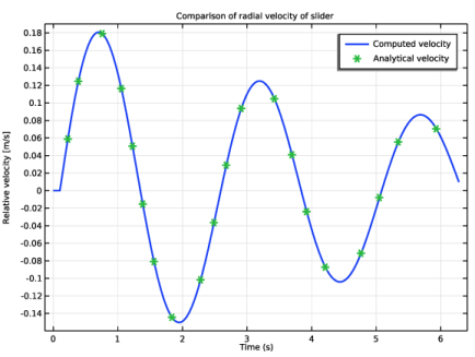 نتایج محاسبه شده با راه حل تحلیلی، که با حل یک ODE برای سیستم معادل به دست می آید، مقایسه می شود. در سیستم حرکت لغزنده در نظر گرفته می شود و بنابراین نیروی خارجی وارد بر سیستم برابر با نیروی گریز از مرکز وارد بر لغزنده است.