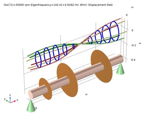 در این مورد، تنها یک دیسک منفرد با افست شعاعی روی روتور نصب شده است. یاتاقان ها با استفاده از سفتی غیرخطی و ثابت های میرایی به دست آمده از تقریب یاتاقان کوتاه معادله رینولدز برای یک یاتاقان هیدرودینامیکی ساده مدل سازی می شوند. این گزینه در COMSOL Multiphysics تعبیه شده است. سفتی خمشی و میرایی چرخشی بلبرینگ نیز در این مورد نادیده گرفته می شود. میرایی سازه ای برای خنثی کردن ارتعاشات فرکانس بالا روتور و همچنین برای تثبیت حل کننده وابسته به زمان اضافه می شود. سرعت زاویه ای شفت از 2000  دور در دقیقه تا 30000  دور در دقیقه در مراحل 2000  دور در دقیقه متغیر است. تغییرات در طیف فرکانس و مدار نقاط مختلف روتور مورد مطالعه قرار می گیرد.