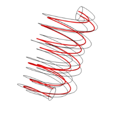 شکل 16-1: میدان سرعت محاسبه شده در یک مارپیچ با استفاده از رابط مختصات منحنی با روش انتشار.