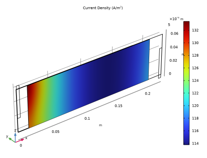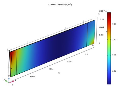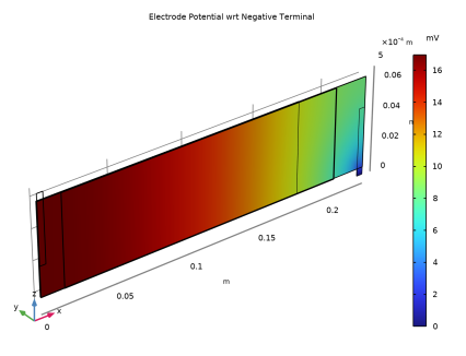 نمودارهای توزیع فعلی مانند این ورودی ارزشمندی برای طراح باتری هستند، زیرا آنها چگالی جریان بسیار بالاتری را در ناحیه نزدیک به زبانه ها نشان می دهند. ما باید به یاد داشته باشیم که مدل ما شبه ایستا است، به این معنی که توزیع مجدد لیتیوم در سلول را محاسبه نمی کند. اگر قرار بود سلول برای زمان‌های طولانی‌تری اجرا شود، نمودارهای توزیع فعلی نشان‌داده‌شده در بالا در نهایت به نمایه‌ای همگن‌تر تبدیل می‌شوند، زیرا توزیع برای تغییرات در پتانسیل‌های تعادل محلی سازگار است. با این حال، باتری که برای مدت کوتاهی در حالت شارژ ثابت چرخه می‌شود، در معرض سایش الکتروشیمیایی بیشتری در نواحی نزدیک به زبانه‌ها قرار می‌گیرد که احتمالاً منجر به پیری سریع می‌شود.