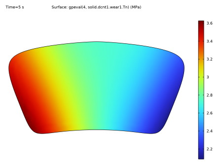 سایش شامل حذف تدریجی مواد در سطوح در تماس است و این فرآیند را می توان با یک معادله سرعت توصیف کرد. در این مثال، یک شکل تعمیم یافته از مدل سایش Archard استفاده شده است که در آن نرخ سایش به صورت ارائه شده است