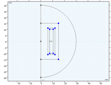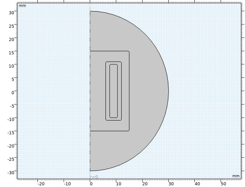 که در آن μ 0 نفوذپذیری خلاء، μr نفوذپذیری نسبی و σ هدایت الکتریکی است. توجه داشته باشید که در بعد متقارن محوری دوبعدی هنگام حل پتانسیل برداری خارج از صفحه (مانند این مدل)، رابط میدان های مغناطیسی از فرمول کوواریانت توضیح داده شده در راهنمای کاربر ماژول AC/DC استفاده می کند ، که در آن متغیر وابسته Ψ = r است . به جای .