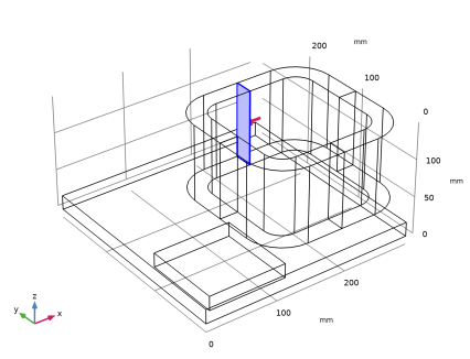 از آنجا که هندسه تقارن ندارد، مشکل باید برای کل هندسه حل شود. همانطور که در شکل 1 نشان داده شده است، هندسه شامل یک سیم پیچ است که به طور نامتقارن بالای یک هادی آلومینیومی ضخیم با یک سوراخ مربعی خارج از مرکز قرار گرفته است. سیم پیچ دارای 2742 چرخش است و یک جریان سینوسی متغیر 1 آمپر در گردش دارد. مشکل محاسبه میدان مغناطیسی و جریانهای گردابی القا شده در هادی برای جریانهای سیم پیچ فرکانسهای 50 هرتز و 200 هرتز، و مقایسه نتایج شبیهسازی در امتداد مکانهای مشخص شده در فضا با دادههای تجربی دادهشده در Ref است. 1 .