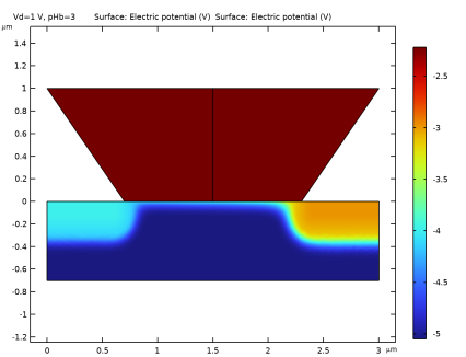 این آموزش از یک مدل دو بعدی از یک ترانزیستور اثر میدانی حساس به یون (ISFET) استفاده میکند تا مراحل اولیه تنظیم اتصال بین فیزیک نیمهرسانا و الکتروشیمی را نشان دهد.