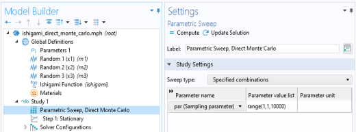 بخش اصلی شبیهسازی یک بررسی پارامتریک و یک مطالعه ثابت است. مطالعه ثابت برای تولید تمام مقادیر تابع مورد استفاده برای پردازش نتایج ضروری است. در مدل، 10000 امتیاز نمونه برای هر یک از متغیرهای تصادفی ایجاد می شود. این با اجرای یک جارو پارامتریک بین 1 تا 10000 در مراحل 1 به دست می آید. برای افزایش دقت شبیه سازی می توانید به راحتی این مقدار را 10 یا 100 برابر افزایش دهید.