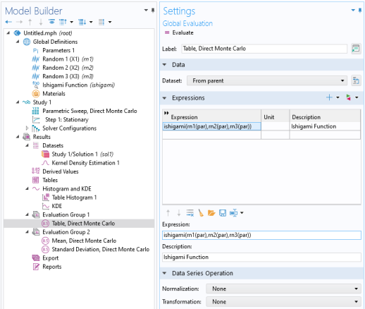 2 | در پنجره تنظیمات برای ارزیابی جهانی ، انحراف استاندارد، Direct Monte Carlo را در قسمت متن برچسب تایپ کنید . |