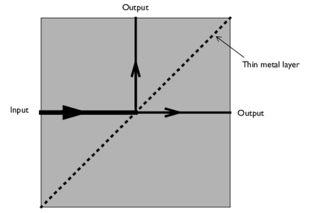 یک پرتو تقسیم کننده برای تقسیم یک پرتو نور به دو قسمت استفاده می شود. یکی از راه های ساخت اسپلیتر، قرار دادن یک لایه نازک فلز بین دو منشور شیشه ای است. پرتو در داخل لایه کمی ضعیف شده و سپس به دو مسیر تقسیم می شود. این مثال لایه فلزی نازک را با استفاده از یک شرط مرزی انتقال مدل میکند، که نیازهای حافظه را کاهش میدهد. تلفات در لایه فلزی نیز محاسبه می شود.