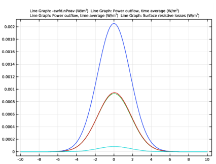 شکل 3: شار توان عبوری از مرز ورودی و دو مرز خروجی و همچنین تلفات در سطح نقره.