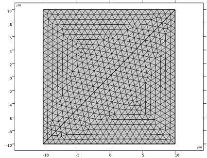 لایه نازک نقره ای با استفاده از یک شرط مرزی انتقال مدل سازی شده است. در یک طول موج فضای آزاد 700 نانومتر، دی الکتریک نقره در حدود ε r  =  – 16.5  – 1.06i است، که در آن قسمت خیالی تلفات را محاسبه می کند. بنابراین، می توانید رسانایی فلز را روی صفر تنظیم کنید. این شرط مرزی با تقسیم مش در مرز، امکان ناپیوستگی در فیلدهای سراسر رابط را فراهم می کند. این می تواند هم تلفات و هم یک تغییر فاز در سراسر رابط ایجاد کند. نیازی به مش ضخامت دامنه ندارد و در نتیجه حافظه قابل توجهی را ذخیره می کند. دو حوزه را با عناصر مثلثی مشبک کنید، با حداکثر اندازه تنظیم شده به طوری که شش عنصر در هر طول موج در شیشه وجود دارد.
