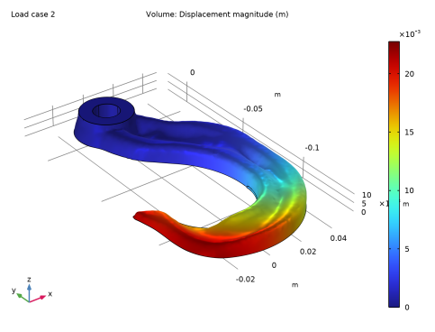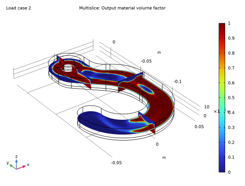 شکل 2: یک نمودار چند برش رنگی با بزرگی جابجایی، طرح بهینه شده توپولوژی را قبل از صدور نشان می دهد.