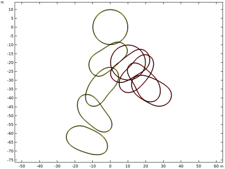 شکل 2: تغییر شکل محاسبه شده دو حلقه با استفاده از فرمول جریمه دینامیکی که هر 5 ثانیه ترسیم شده است.