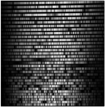 شکل 1: نمونه ای از طیف دو بعدی échelle. جهت پراکندگی اکل (طول موج های کوتاه تا بلند) از چپ به راست است و پراکندگی متقاطع از پایین به بالا انجام می شود.