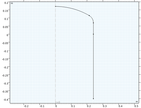 به دلیل تقارن محوری دوبعدی و تقارن بازتابی، مدلسازی یک چهارم ظرف کافی است، شکل 1 را ببینید . خطوط قرمز محور تقارن چرخش و محور تقارن بازتاب را مشخص می کنند.